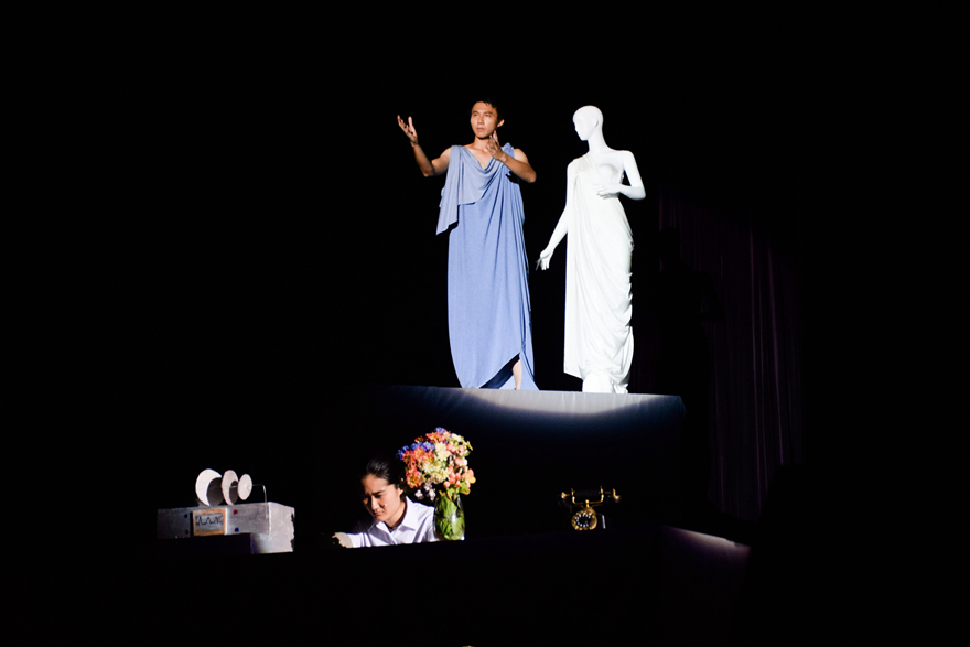 训练成功的Eliza在沙龙舞会上艳惊四座,Higgins如愿赢得了赌约,发现真相后心碎愤怒的Eliza告诉他“You see, the difference between a lady and a flower girl isn’t how she behaves. It’s how she’s treated.(你知道,一位淑女和一位卖花女的区别不在于她怎样表现,而在于她受到怎样的对待。)” Eliza离开了,Higgins独坐家中,迷惘而苦闷。此时高台上的皮格马利翁正向神剖白自己对雕像的爱,而Higgins也在自我拷问中发觉自己对于亲手训练出的Eliza怀有深深的爱意。最终雕像变成了一位真正的女子与Pygmalion相拥,而Eliza也回到了Higgins的身边。温暖的结局令观众动容,现场掌声如雷。