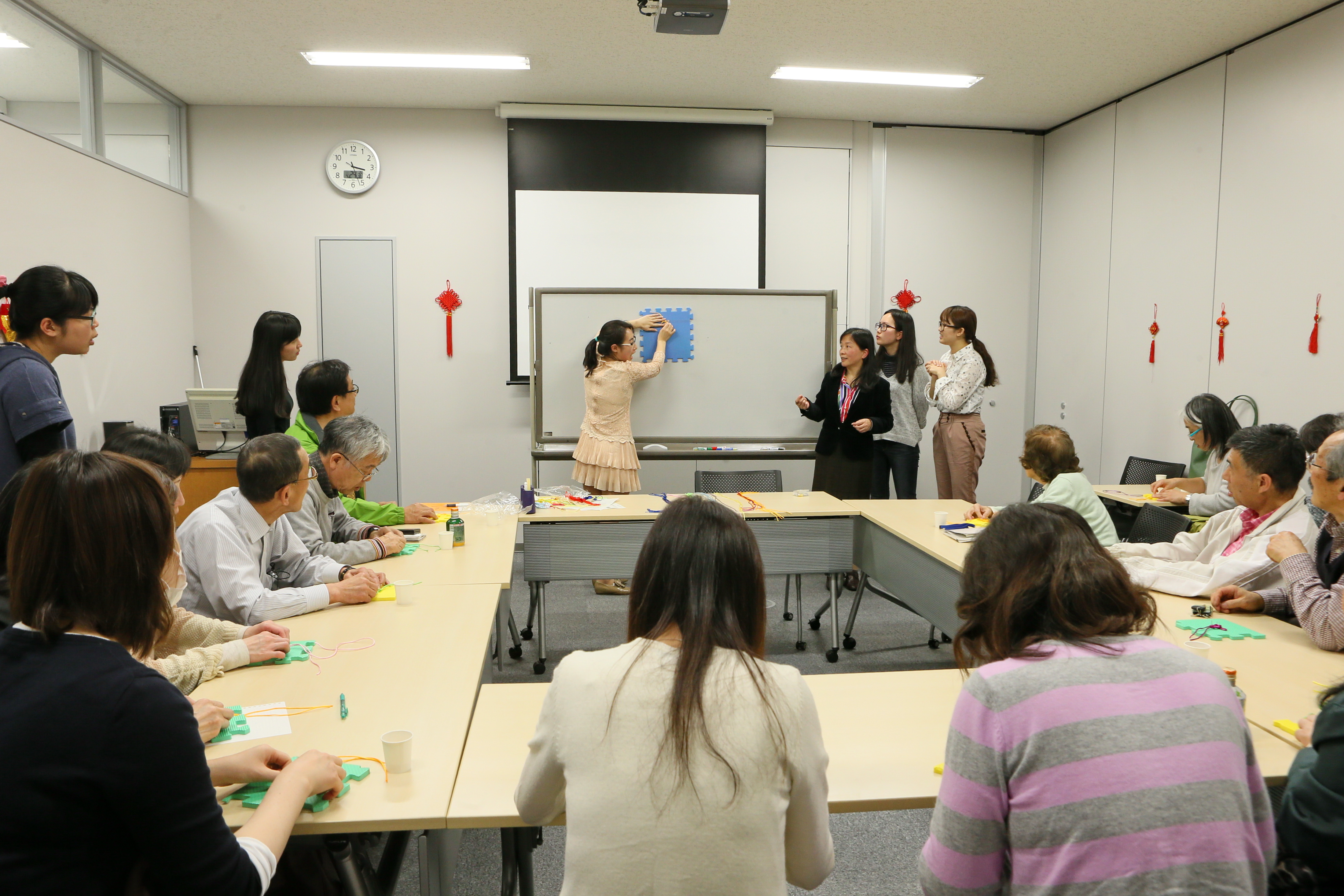 在“中国文化与中国结”文化沙龙活动中,余六一从中国结的起源到其蕴含的文化内涵,做了详细介绍,并与学员互动讨论,气氛非常活跃。随后,学员们亲手尝试中国结的制作,大家按自己喜爱的颜色挑选了绳子,在孔院汉语教师李西子的指导下,用心编织。与此同时,还与札幌大学的中国留学生进行了交流。