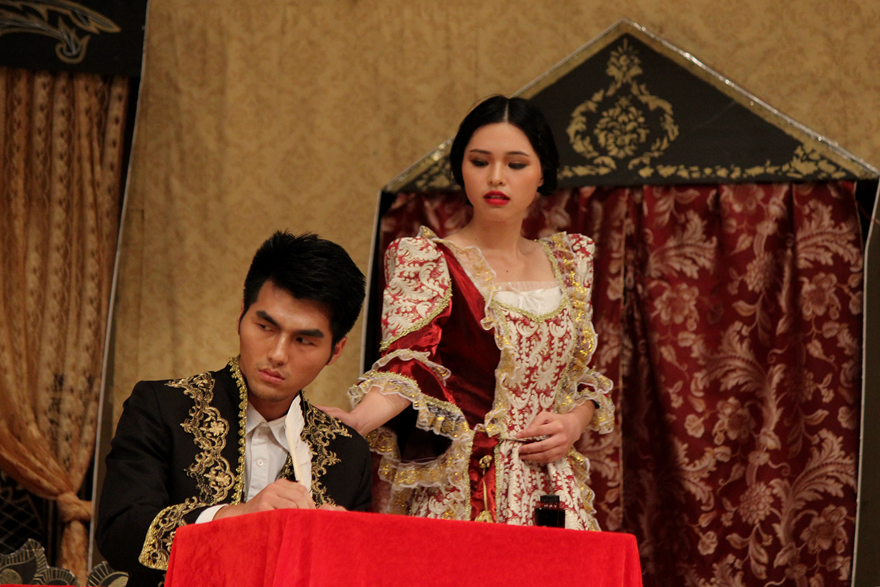本网讯 6月11日晚,我校英文学院第十七届英文戏剧大赛于云山会堂盛大开幕,本次“戏剧之夜”以回顾西方戏剧史为主题。四个剧组分别上演《Antigone》(安提戈涅)、《Duchess of Malfi》(马尔菲公爵夫人)、《A Street Car Named Desire》(欲望号街车)、《Buried Child》(被埋葬的孩子 )。以四部风格各异的悲剧串联起一部交织着命运之手与欲望人性的悲壮史诗。