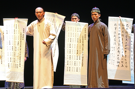 本网讯 6月11日晚,佛山粤剧传习所(佛山粤剧院)在南校区大会堂为我校师生带来大型历史话剧《康有为与梁启超》,重绎了一对师徒37年的家国情怀。这是由校团委主办、校艺术团体承办的“走进文化名家名团百场系列活动”之一。
