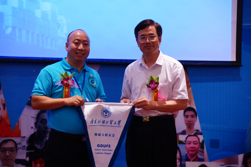 大会介绍并通过了《广外物流校友会执行章程》和理事会成员构成。何传添为校友会授予会旗。