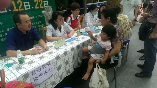 本网讯 6月1日上午,我校外语研究与语言服务协同创新中心儿童语言障碍研究团队参加了由广东省中医院发起和组织此次“关爱儿童就是关注我们的未来”的大型义诊活动,为“特殊型语言障碍(SLI)”的家庭提供咨询。