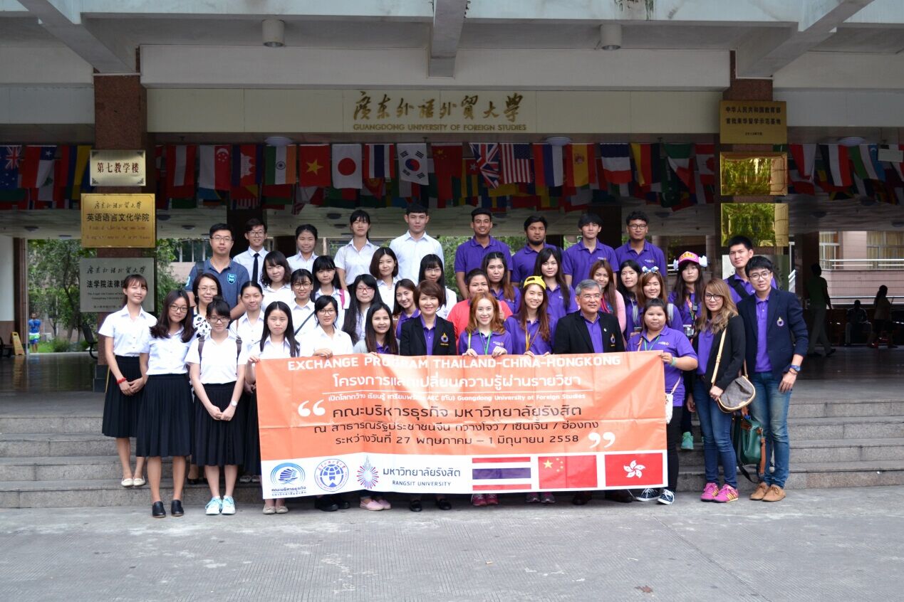 本网讯 5月28日,泰国朗实大学代表团一行对我校进行友好访问,在泰国文化室与我校代表进行了交流活动。出席此次交流活动的有朗实大学代表团团长、工商管理学院副院长碧亚拉女士,东方语言文化学院副院长罗奕原,朗实大学师生及我校泰语系师生。