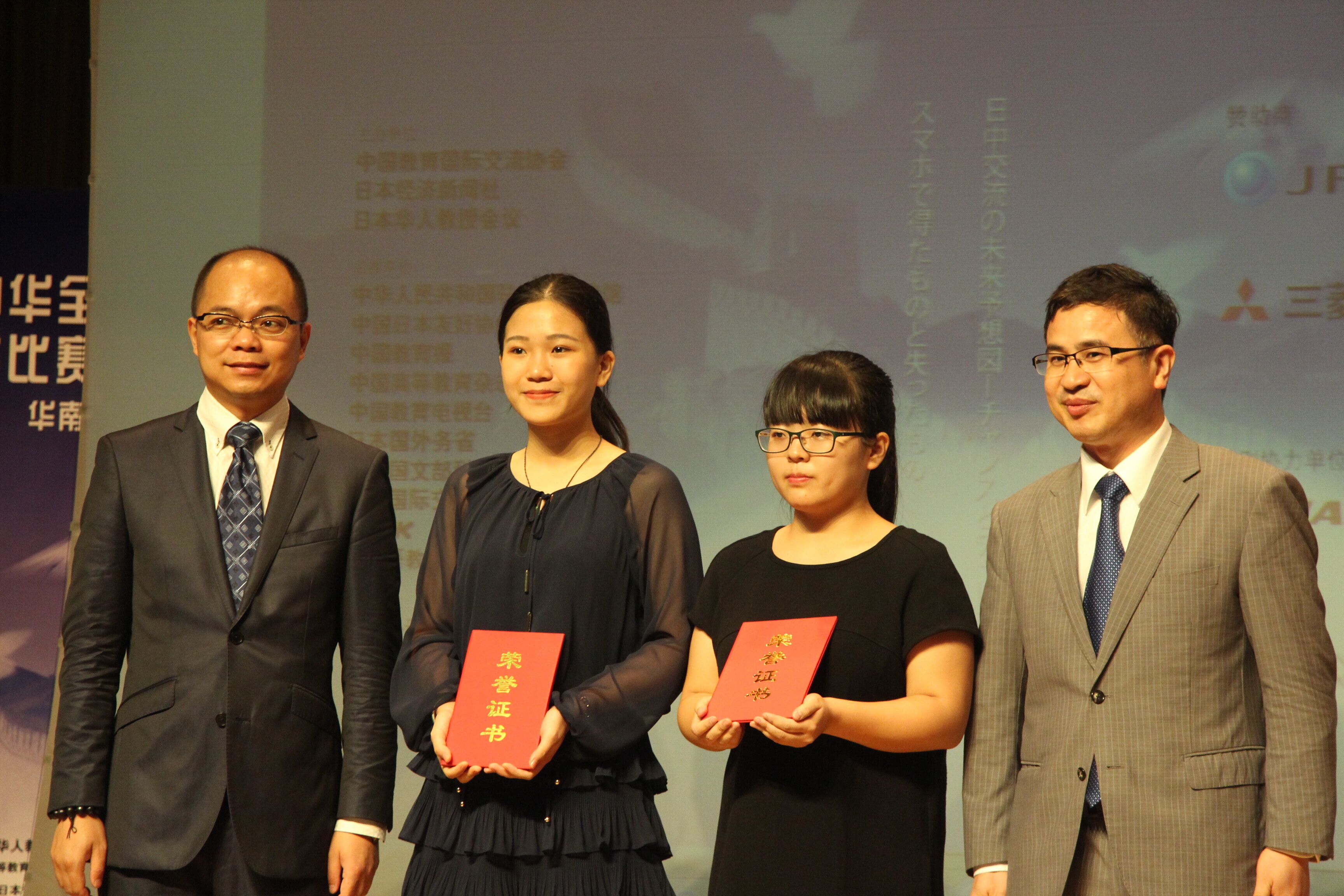 最后,分别来自暨南大学和广东培正学院的张未然、林梦婕一同斩获了特等奖,并获得了由日本航空公司提供的往返机票,之后将代表华南地区赴日本东京参加总决赛。而我校黄嘉伟荣获一等奖的佳绩。除此之外,本次大赛还设有优秀指导奖,由负责指导黄嘉伟的我校日语外教浅井治获得了该奖项。