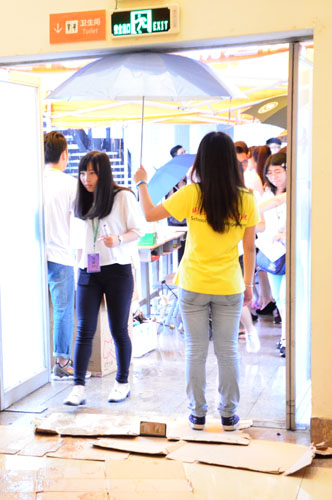 在这次活动中,还活跃着另外一群人的身影:他们穿着黄颜色的衣服奔走于场地的各个角落;每场活动他们来得最早却走得最迟;他们为前来参与活动的同学们撑伞却全然不顾自己被雨水沾湿的衣服;搬帐篷、运物资,他们——就是我们团学辛勤的工作人员们。
