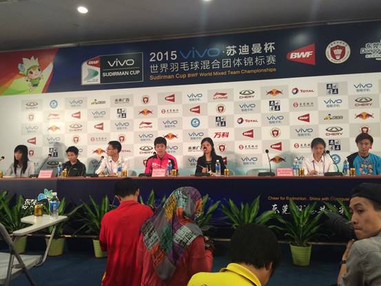 5月9日,来自三个学院的7名翻译为本届苏迪曼杯的赛前新闻发布会提供英、日、韩、印尼四种语言的交传服务。礼宾部钟君同学为世界羽联秘书长托马斯(Thomas Lund)提供陪同口译服务。另外有4名同学赴白云机场迎接各自负责的参赛队伍。其他同学也在各自的岗位上出色完成工作任务。