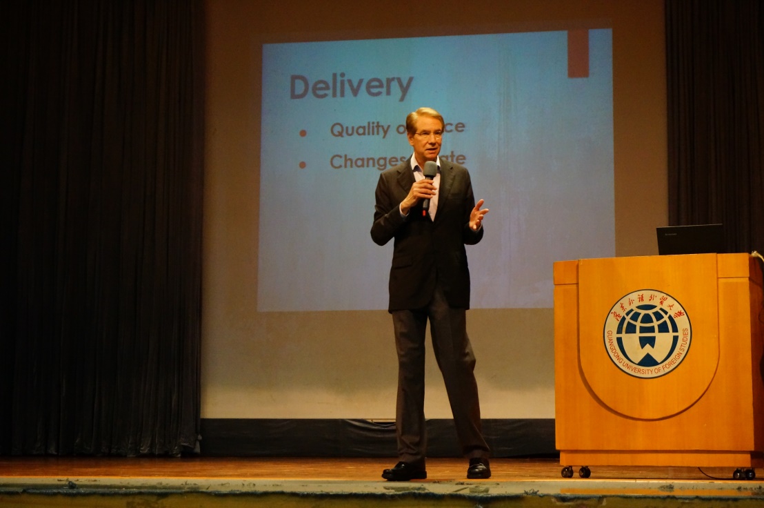 讲座开始前,董金伟代表学校向卢卡斯教授赠送了礼品,卢卡斯向我校回赠了两本他的著作《演讲的艺术》。