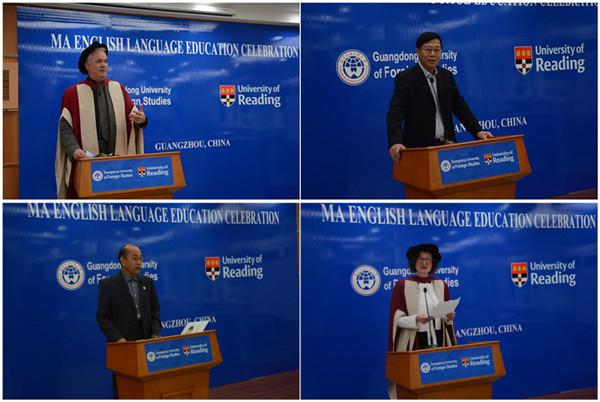 Andy Goodwyn致辞中谈到,广外和雷丁两所大学跨越大洲克服种种困难形成了合作关系并创办了这一英语教育硕士项目。双方致力于培养国际化人才,给予学生国际化的教育机会,使他们能够学习专业知识,提高素质能力,让教育和知识如火把般照耀他们的人生。