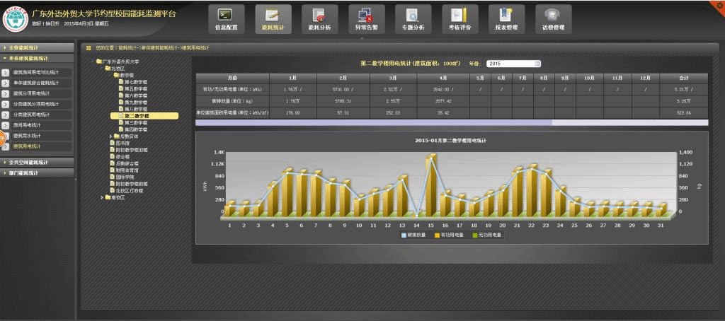2014年暑假,后勤处利用住建部专项资金220万元建设了覆盖南北校1377个监测点的节能监控平台,可跟踪各监测点实时能耗,为精细化节能管理奠定基础。2015年1月23日,财政部、住建部、教育部联合检查组检查我校节约型校园能耗监测平台建设情况,核查组专家一致认为我校节能平台总体建设技术方案规范,符合住建部技术导则要求,建设项目内容紧密结合学校实际,工程施工规划合理,严格按照工程项目标准实施。