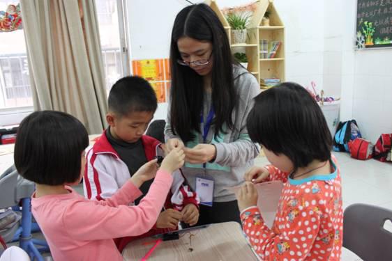 小牛顿项目老师在指导学生制作灯笼