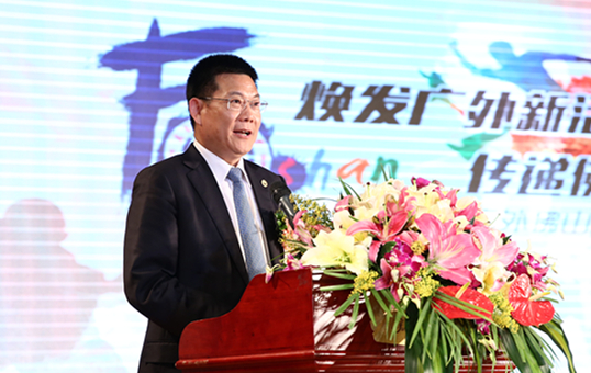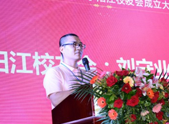 何传添代表学校对阳江校友会的成立表示祝贺。他介绍了学校的发展情况并回顾了广外的发展历程,希望加强母校和阳江校友会的联系与交流,努力促进阳江校友会的发展与壮大,一起携手共筑美丽广外梦。