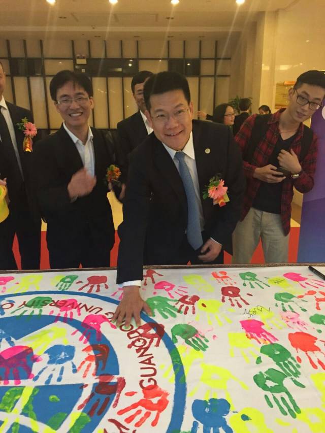 大会之前,广外“校友之心”传递活动正式启动,仲伟合、何传添与香港、深圳、广州校友会会长,及600多位广外佛山校友及各兄弟校友会代表,在“校友之心”画卷上盖手印并签名,献礼广外50周年华诞。