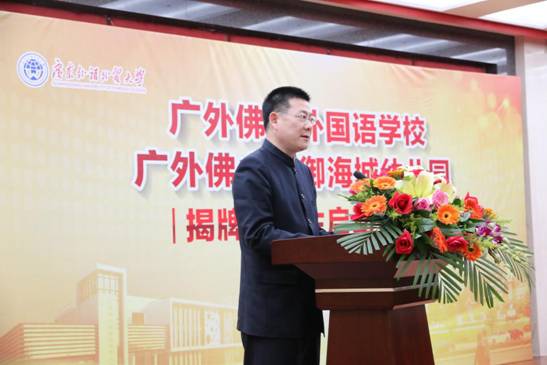 高明区副区长苏年福和国信控股常务副总裁周瑞生先后致辞。广外佛山外校校长李建民、广外佛山君御海城幼儿园园长周宇(兼)分别介绍了学校和幼儿园的办学理念和特色。仲伟合作总结讲话,他表示,广外佛山外校、君御海城幼儿园项目是广外基础教育发展战略的重大布局,广外将全程负责学校、幼儿园的日常管理运营、教学评估、教师培训等工作。另外,广外还将利用自身雄厚的外语学科优势,为学校注入丰富的师资、教师培训、国际化办学资源。