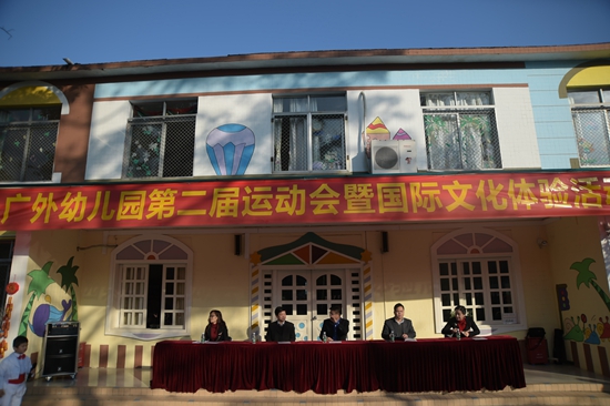本网讯 12月31日,广外幼儿园迎来了第二届运动会暨国际文化体验活动,全体师生及家长参加了活动。教育集团总经理孙建军,广外附中小校长吴玉爱,家长代表、人事处处长谢文新以及幼儿园退休教师等嘉宾出席并观看了开幕式。