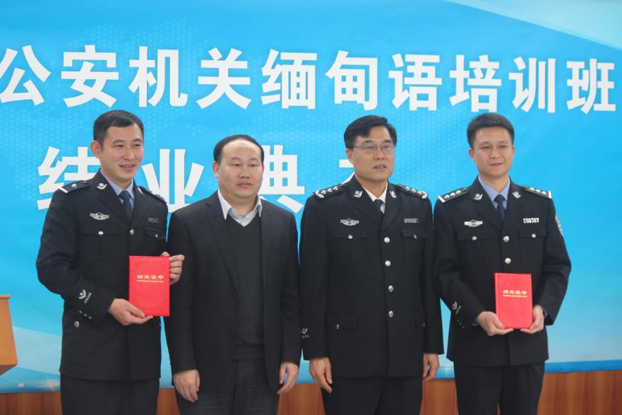 本网讯 12月30日下午,由我校东语学院负责的、为期十个月的广东省公安机关缅甸语培训班结业典礼在我校第九教学楼黄华讲堂举行。