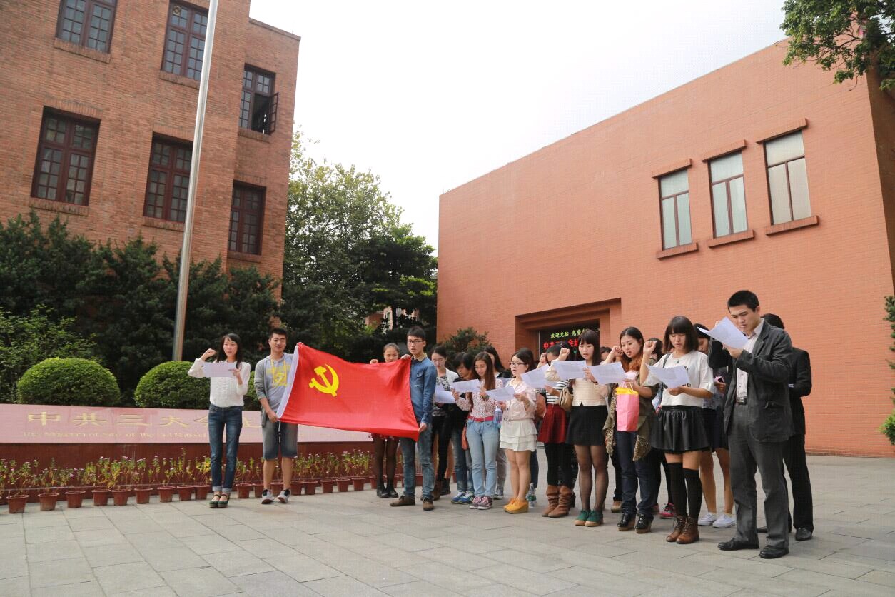在讲解员的带领下,师生们参观了农讲所发展历程陈列展馆。以农讲所不同时期发展历程为线索,集中展示大量珍贵照片和文物资料,重温了农讲所的历史意义和革命先辈的先进事迹。通过参观,重温了党的光荣历史,接受了一次爱国主义的洗礼和一次爱国主义教育和党性教育,深深感受到了革命先烈们在那段峥嵘的岁月里付出的努力。师生立志在先驱们精神的感召下努力学习、好好工作,继承和发扬他们的精神,传承他们的遗志,要将对党的先进性的理论学习融入到日常生活学习中。并在“三大”会址广场,庄重地举行了新党员入党宣誓和老党员重温誓词的仪式。