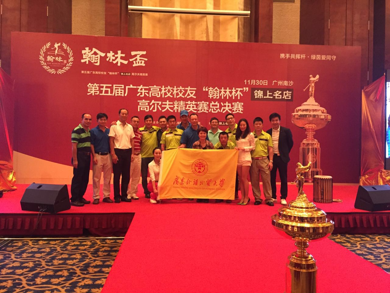 本网讯 11月30日,第五届广东高校校友“翰林杯”锦上名店高尔夫精英赛总决赛在南沙高尔夫举行。经过激烈角逐,我校代表队的9位校友以精湛的球技,最终在15支参赛队伍中以总杆数715杆再次夺得亚军。校友总会副秘书长潘相宇及高尔夫球联谊会的校友代表们出席了颁奖晚宴。
