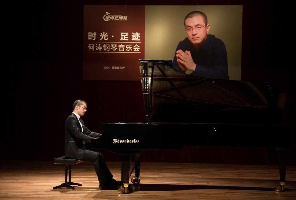 本网讯 我校青年钢琴教师何涛年度收官之作、继“黑白键的旅行”、“蓝色的狂想”系列钢琴音乐会的第三场演出——“时光·足迹”个人钢琴音乐会,于11月21日晚荣登星海音乐厅室内乐演奏厅。他是我校首位在星海音乐厅举办钢琴独奏音乐会的老师。
