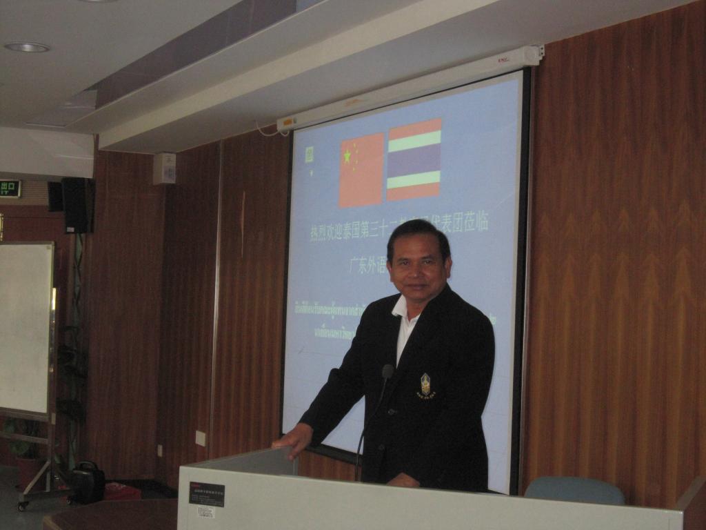 代表团团长基提本彻局长首先感谢我校留学生教育学院的热情接待,他说到,“武里南府位于泰国东北部,此次率领当地45所中学校长赴华参观、观摩,对于广外明晰的国际化发展战略非常感兴趣,希望尽快开展与广外的全方位合作”。他还提到,泰国各地汉语热“如火如荼”,希望能鼓励更多的泰国同学到中国来学习汉语,了解中国文化。