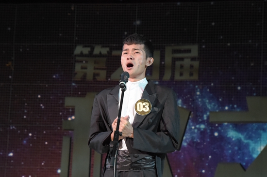 “我们都有一个家,名字叫中国......”1号选手陈倩冰用豪迈的歌喉为本次比赛拉开帷幕,一首民族歌曲《大中国》注入摇滚曲《we will rock you》,顿时把观众的情绪带动起来。在最后争霸赛上,她曲风一转,深情演绎了张学友情歌《慢慢》,最终获得校园十大歌手的荣誉称号。