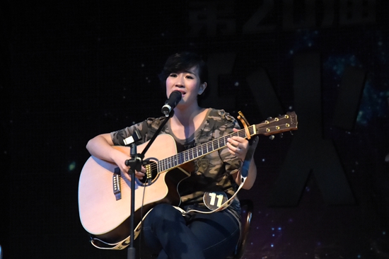 当来自中文学院的陈良璧出现在舞台上时,全场人都为之欢呼喝彩。开唱前,她稳健成熟的台风足以让人感受到女王气场。擂台赛上,她以《无与伦比的美丽》和《爱要坦荡荡》的小清新串烧,自弹自唱,令人如沐春风。在争霸赛中,她一个人走到舞台中央,穿着一袭长裙,用她自信的肢体语言,用她娴熟的唱功,一首《站在高岗上》,展现出一个为舞台而生的热血中文人。据了解,她已经是“秋之声”的常客,连续参加了四年的秋之声。当问及多次参加的原因时,她回答道:“喜欢舞台,希望把自己喜欢的音乐分享给大家。”出色的表现让她最终一举夺得非专业组独唱选手的冠军,可谓是实至名归。