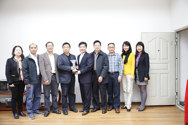 最后,王斌代表英文学院向川大外国语学院赠送了青花瓷纪念樽。