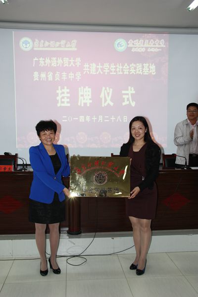 谢秀兰介绍了我校西部计划志愿者在西部服务及留在西部工作的感人事迹,并强调,我校鼓励优秀大学生到西部去,到基层去,到祖国最需要的地方服务和就业,这次支教是广外与黔西南州战略合作的项目之一,广外将充分发挥人才优势,为贞丰教育发展提供着智力服务和人才支持。凃章友指出,在这个全球资源共享的时代,我们必须提升知识水平。学好外语,对于踏入这个国际化的时代具有重大作用。他充分肯定了我校大学生的支教工作,表示广外优质的外语教育资源对于贞丰中学英语教学的提升具有重要作用,希望我校与贞丰能够长期合作与交流。