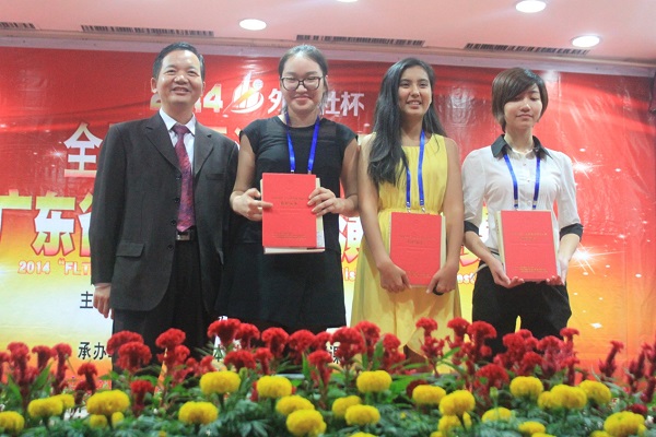 本网讯 11月2日,2014年“外研社杯”全国英语演讲比赛暨广东省大学生英语演讲比赛在仲恺农业工程学院学术报告厅举行,共有来自全省44所高校的66名优秀选手参加比赛。我校经贸学院的穆克热木以优异的成绩摘取本次演讲比赛的桂冠,获得晋级北京全国总决赛的机会,商英学院的华珂获得一等奖。