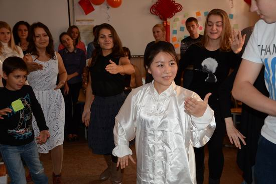 本网讯 2014年9月27日,为庆祝孔子学院成立十周年,俄罗斯乌拉尔联邦大学孔子学院成功举办了“孔子学院日”庆祝活动。中国驻叶卡捷琳堡总领馆教育领事李炳国先生、孔子学院中方院长陈辉女士、孔子学院外方院长库兹科娃女士以及孔子学院老师、志愿者、孔院外方工作者、孔院学生、当地学生、中华文化爱好者和留学生等出席了此次庆祝活动。