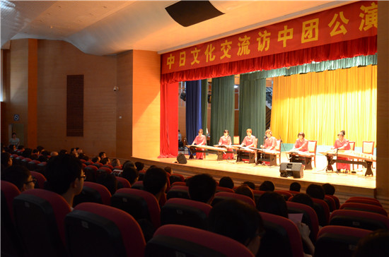 本网讯 9月11日下午,中日文化交流访中国代表团在北校区六教学术报告厅举行了公演,为我校师生带来了高水平古筝表演与和服展示活动。公演由日本札幌大学孔子学院,“琴S·WORLD”,“絹の衣”等民间友好团体及我校共同举办。到场的嘉宾有我校副校长阳爱民,札幌大学孔子学院院长张伟雄。校内外中日友好师生共同观赏了表演,会场座无虚席。
