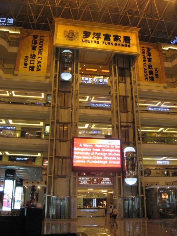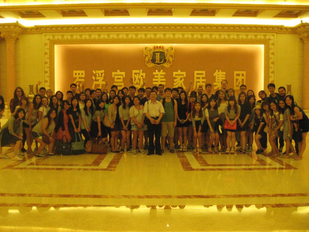 留学生教育学院师生首先参观了广东罗浮宫家居集团。据了解,该建筑为目前全球最高、占地面积最大的地标性家居主题建筑群。全体师生纷纷表示被眼前的宏伟的场景所震撼,并发出了阵阵感叹。家居集团特意为来访的同学们提供了英语讲解员。在讲解员的引领下,师生们逐层参观了罗浮宫家居。来自美国的Karren表示,这是她第一次见到如此宏大的家居中心,并想体验在这里展示的每一样家具。