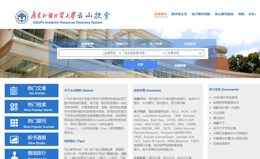 云山搜索访问地址:http://discovery.gdufs.edu.cn:1701/