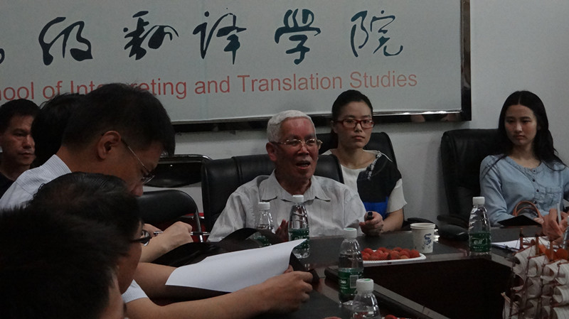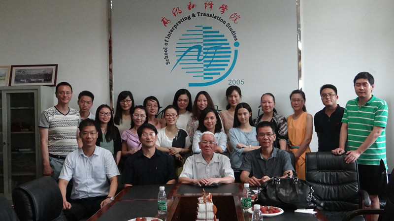 本网讯 近日,由组织部主办、翻译学院教工党支部承办的党建工作坊之“弘扬社会主义核心价值观,树立青年教师道德新风尚”茶话会于翻译学院四教会议室召开,第一讲邀请了我校原校长黄建华教授担任主讲人,为我院青年教职工、博士生、硕士生分享人生经历和翻译感悟。
