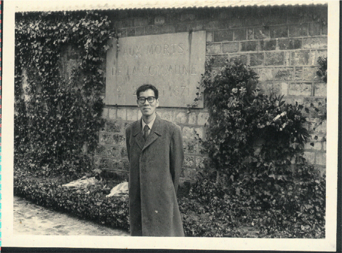 信仰社会主义的青年黄建华摄于法国巴黎公社墙前