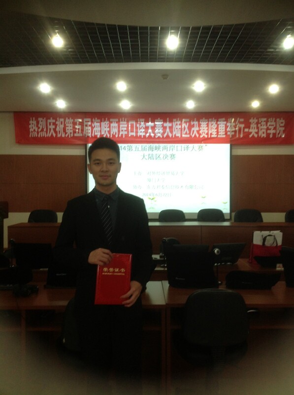 本网讯 6月22日,第五届“海峡两岸口译大赛”大陆区决赛在北京对外经贸大学落下帷幕,我校翻译学院MTI口译方向的学子陈黎辉获得大陆区决赛二等奖。今年10月,他将和另外11名选手与台湾地区学子会师厦门总决赛。