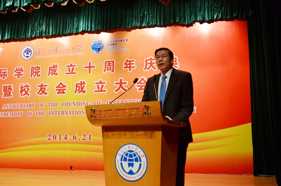 在致辞中,我校副校长方凡泉总结了国际学院十年来的办学成果,称赞其作为我国出国留学培训的先行者,在积极整合大学国际教育合作优势资源的基础上,开创了国际化特色鲜明的国内外高等院校联合培养模式,并成功于2013年成为教育部出国留学培训和研究中心。目前我校国际学院已与18所国外院校建立了友好合作关系,大大增强了我校对外合作交流的综合实力。