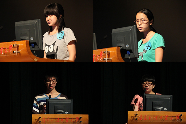 个人朗诵的题目包括一篇轻松幽默的美音TED演讲作品,以及一篇相对正式的英音BBC播音作品。虽然各班的参赛选手以随机抽取的方式产生,但他们大多淡定自若地展现了自己的语音水平。