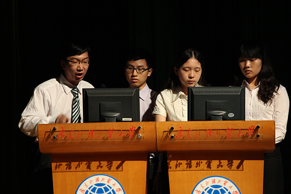 本次比赛的评委由英文学院国家级教学名师、英语语音学专家王桂珍教授,英文学院副教授刘莹、林秋茗、黄跃文,讲师冯蔚,以及外教Richard Johnson共同担任。