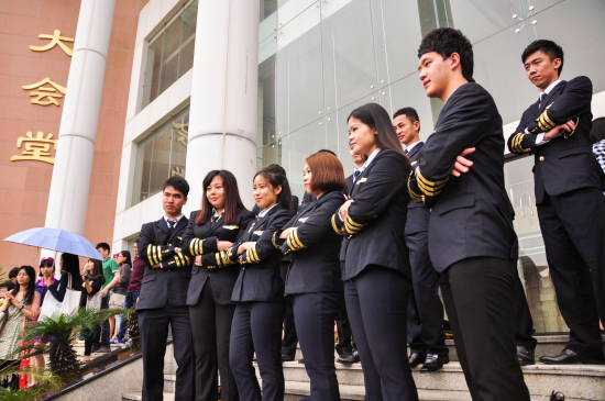 端端正正站好准备拍毕业照啦,潇洒的背影让观众先过把瘾。