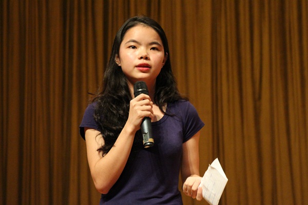 广东省演讲比赛一等奖得主、英文学院2011级学生阮博慧也介绍了她的演讲经验。她提到,在演讲当中,演讲者所说的任何事都要遵循内心,对自己诚实;“ To be honest, to be who you are.”她如是说。