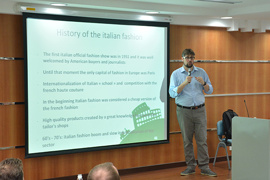 随后,Matteo Brandi带领大家来到意大利的工业生产时代。他指出,意大利的工业生产时代开始较晚,直到第二次世界大战结束之后才开始发展并进入繁荣时期。据介绍,意大利的工业生产有三个特点:一是与美国联系紧密;二是以中小企业为主;三是大多数为家族企业。