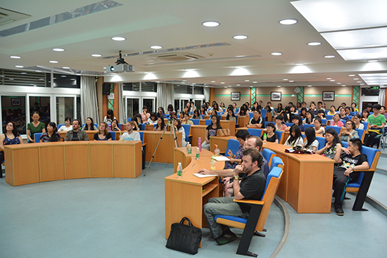 本网讯 5月22日晚,广外外专论坛“世界文化教育巡礼系列”第二讲在MBA学院举行。本次活动由国际合作与交流处主办,西语学院承办。来自意大利的外教Matteo Brandi在论坛上揭开“意大利制造”的神秘面纱,带领观众进入精彩的意大利文化艺术之旅。