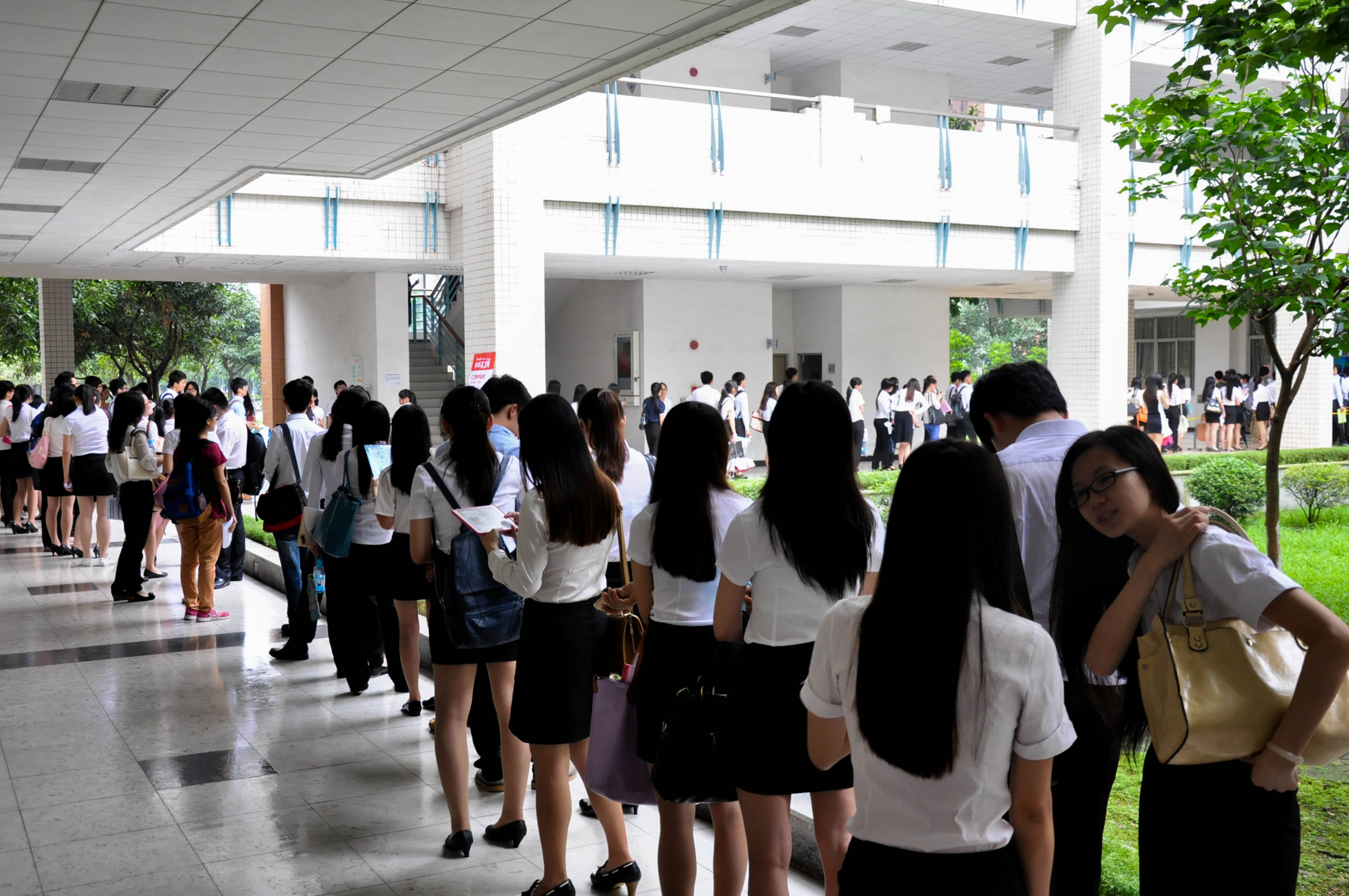 5月18日下午,招聘会还没开始,在课室外已经排起了长长的队伍。来自广外财经学院的何同学说:“这次的招聘会真是体会‘龙的传人’,课室外面排成了一条长龙。”他从早上开始参加了两场面试,希望能够找到跟自己专业相关的实习机会。