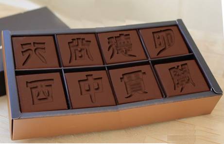 本网讯 5月7日,受教育集团邀请,政管学院4个学生创意团队展示了他们为纪念建校50周年而设计的几款校园文化产品,其中一款“广外巧克力”非常博人眼球。