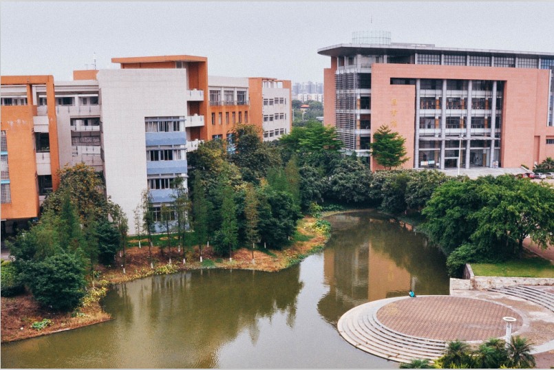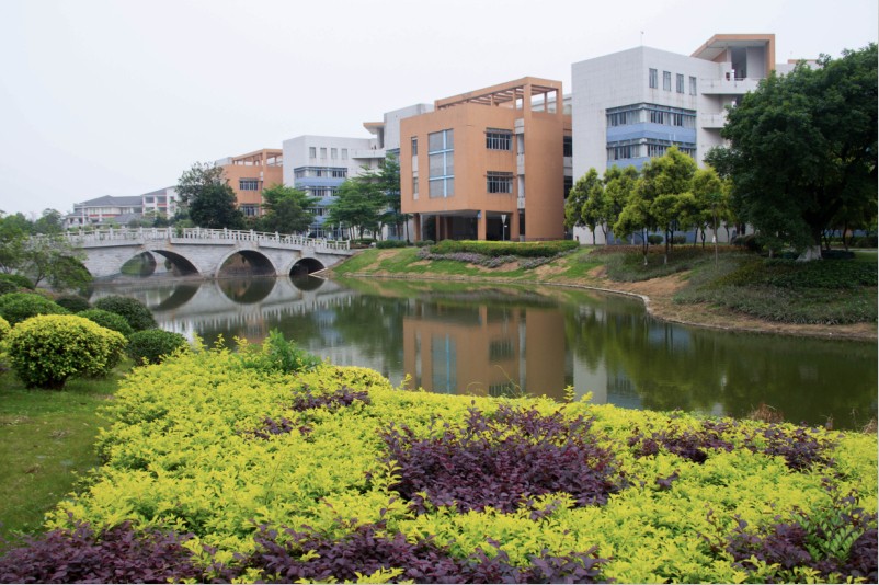 在广东文化中,水意味着吉祥、灵动,广外南校的语心湖正是这样的一湖活水,给广外南校带来勃勃生机与无限灵气。所谓“知者乐水,仁者乐山”,在广外南校,起源于珠江的语心湖与凤凰山山水相依,与院系办公楼和图书馆广场这两个亲水平台南北相望,充分展现了广外“有山有水、有智有仁”的浓郁的文化气氛。