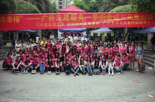 本网讯 4月12日下午,受白云区团委、三元里街道办邀请,我校团委青年志愿者行动指导中心(简称中心)品牌活动雷锋月“服务一条街”在广州三元里金桂园小区进行。来自广外的八支志愿服务队,联合广外附中、广中医红十字会、华师无线电协会义修队在中心的指导下,开展了丰富多样的志愿服务活动,受到居民的赞扬。“很有意思。不仅小孩喜欢,我也喜欢,希望以后多些这样的活动”,一位带孩子前来体验志愿服务的女士在接受记者采访时兴奋地说道。