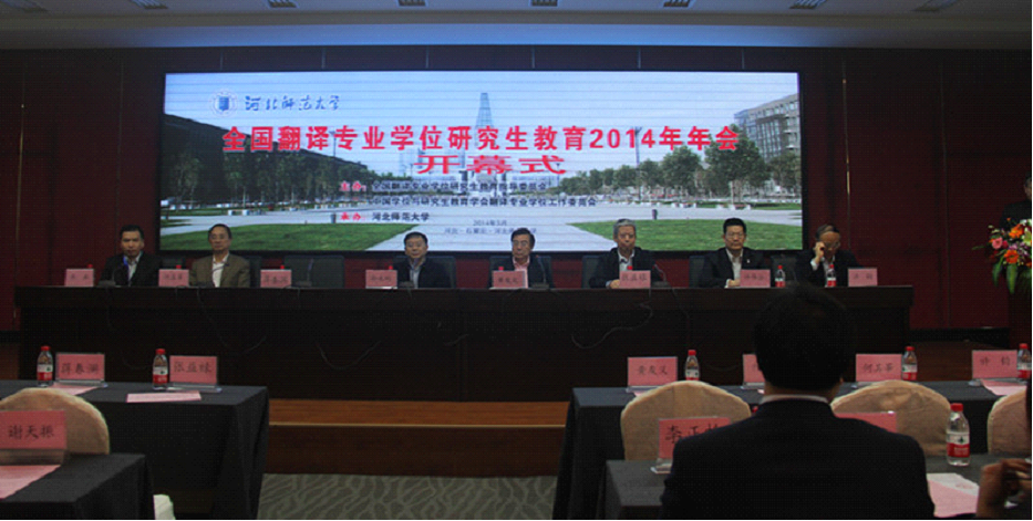 本网讯 3月28日至29日,全国翻译专业学位研究生教育2014年年会及翻译专业学位研究生教育指导委员会2014年工作会议在河北师范大学召开。本次年会由全国翻译专业学位研究生教育指导委员会主办,河北师范大学承办,主题为“创新人才培养模式,提升人才培养质量”。