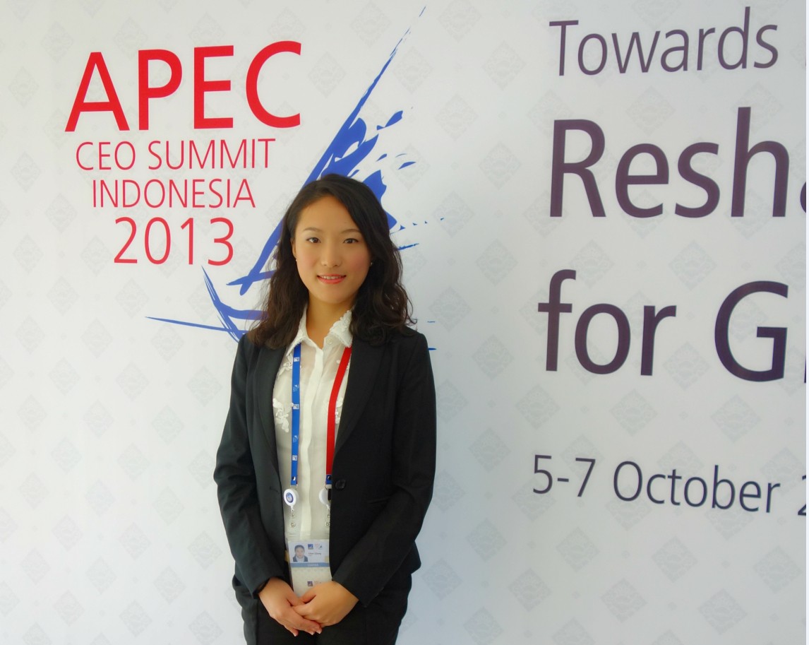 陈琼是我校翻译学院研三学子,在读期间成绩优异,表现突出,曾获研究生国家奖学金、广外“校长奖章”等殊荣;参与社会翻译服务达三十多场次;并多次获得国内国际比赛奖项。2013年7月,她获MODEL APEC亚太地区总决赛第四名,于9月作为中国青年代表出席在印尼日惹2013APEC青年峰会,获得印尼贸易部部长和马来国际贸易与工业部秘书长等高官接见,并在APEC CEO峰会上向日本首相和马来总理提问。