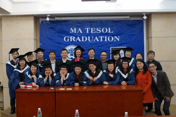 校党委副书记陈建平、英国利兹大学博士Judith Hanks、研究生处副处长朱文忠、交流处副处长吴俊峰、利兹项目任课及指导教师、第八期毕业学员及家属和第九期在读学员。本次典礼由英文学院利兹项目中方负责人王蕴峰主持。