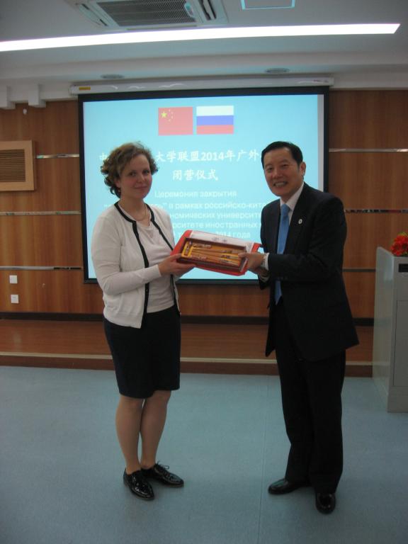 副校长方凡泉为俄方老师颁发结业证书及纪念品